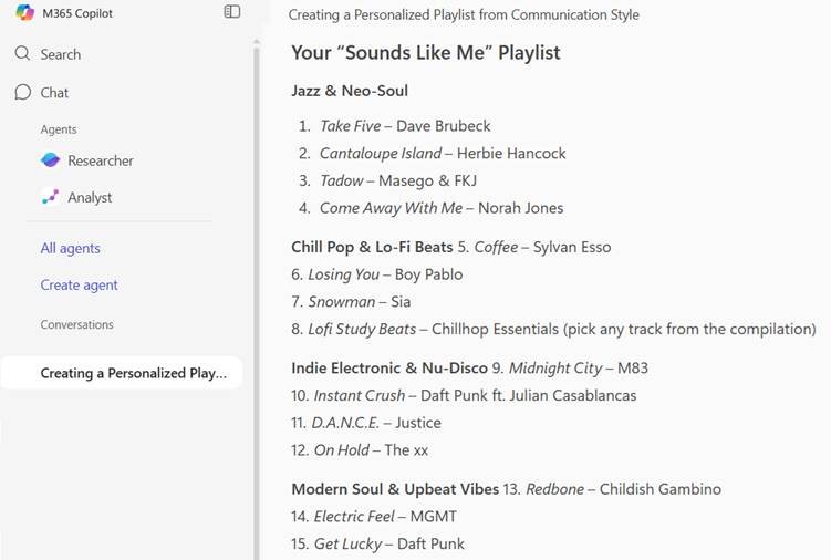 Tout est parti d’un post LinkedIn de Femke Cornelissen, Chief Copilot et Microsoft MVP, racontant comment Copilot avait transformé son style de communication… en playlist musicale.